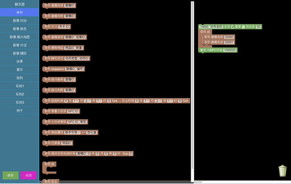 构建一个剧情,首先需要填入剧情编号与剧情任务名称,在触发器中选择该剧情的触发方式,MOD工具中提供了与NPC对话触发、剧情完成触发、进入区域触发、揭悬赏榜单触发、邮件触发以及时间触发这六种触发方式,与条件搭配让触发方式变得纷繁多变。