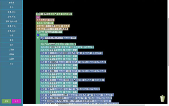 4、辅助指令是帮助剧情更合理的播放,能操控多名角色同时动作或发言的同时执行指令,能播放音乐或插播动画的播放指令,更有开启小游戏或功能的面板指令。