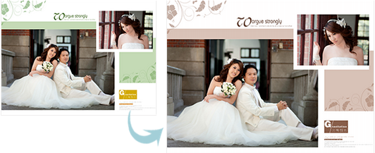 模板文件仅为PSD的1/20,传输.使用方便快捷; 现有的PSD模板和素材可以无缝转到N8系统,延续您的设计风格; 模板炫变技术,让不同尺寸的相册可以直接使用同一套模板; 随时保存模板中的相框、花边等素材到自己的素材库。