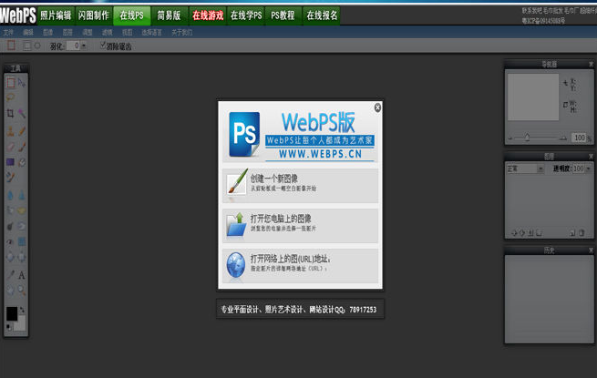 照片制作软件是一类对照片进行分析、修复、美化、合成等处理的软件,WebPS照片编辑器是一个全免费的在线照片编辑器。作为国内优秀的在线照片编辑器,它具有在线照片编辑器的常用照片处理如照片放缩、照片大小裁剪、照片旋转、照片加边框、照片加字,照片加水印,有修改照片亮度、对比度、饱和度、色相等高级功能,更具有其他照片编辑器不具有的各类非主流照片效果,如照片泡泡文字、非主流照片、非主流化妆、非主流人像美容、个性印章、艺术相框,有照片黑白、照片模糊、照片怀旧、照片毛玻璃、图像油画等照片艺术效果。