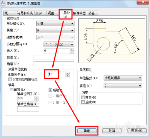 在对话框中选择“主单位”这一选项卡,里面有个“比例因子”,修改需要的倍数: