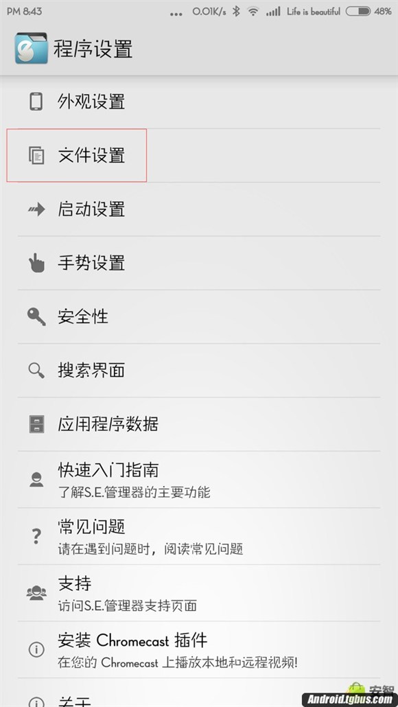 首先,下载安装SE管理器并打开,调成显示隐藏文件