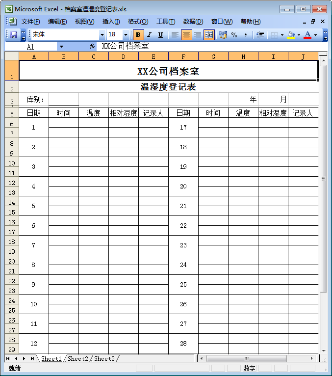 做好档案室温湿度记录与保管好档案,延长档案寿命有很大的关系。之前看到有朋友在问档案室温湿度记录表怎么做的问题,是啊,一份档案室温湿度记录表中应该包含有哪些内容呢?本节内容东坡小编为大家整理带来的便是一份excel免费版档案室温湿度记录表参考模板,需要这份温湿度记录表格范本作为参考或是需要打印的朋友们点击本文相应的下载地址即可下载使用该表格哦!