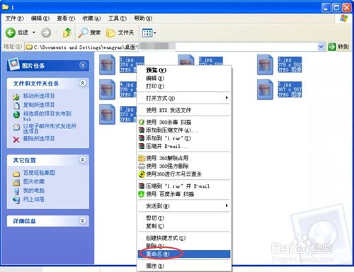 1、首先把照片全部选中,然后右键选择一张,选择重命名,这里注意,直接将原来照片名删除即可,不需要输入任何字符(或者输入你自己喜欢的名称),之后,照片就被重命名为这种形式了 (1).jpg, (2).jpg, (3).jpg,.........