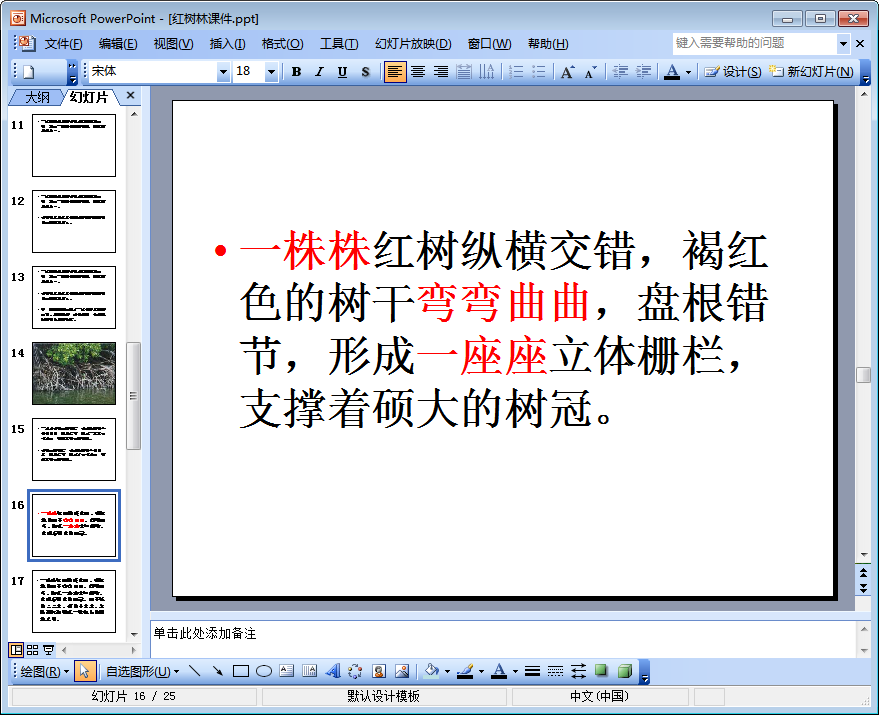 小编在这里所说的红树林指的是经常出现在小学语文课本中的一篇课文。本节内容东坡小编为大家整理带来的便是关于红树林这篇课文的ppt课件,该ppt课件共25页,图文并茂,十分适合作为老师引导学生理解红树林一文的教材,以下是该免费版优秀ppt课件的相关介绍,如果想要查阅该ppt课件全部内容的话,点击本文相应的下载地址进行下载即可!
