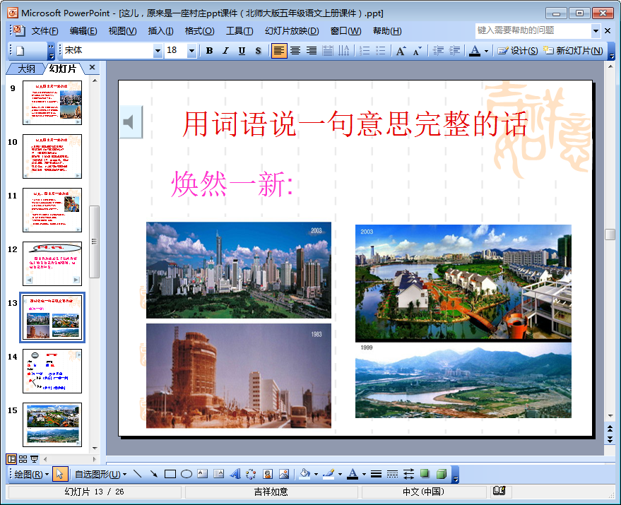 本节内容东坡小编为大家精选带来的是北师大版五年级语文上册课件之这儿原来是一座村庄ppt课件,该ppt课件共26页,内容完整、配图清晰,是一份不可多得的免费版精品课件。该ppt课件中标注了课文的重难点词汇,并有课堂练习习题设计等,点击本文相应的下载地址即可获得该精品课件,有需要的朋友你还在等什么?快来下载吧!