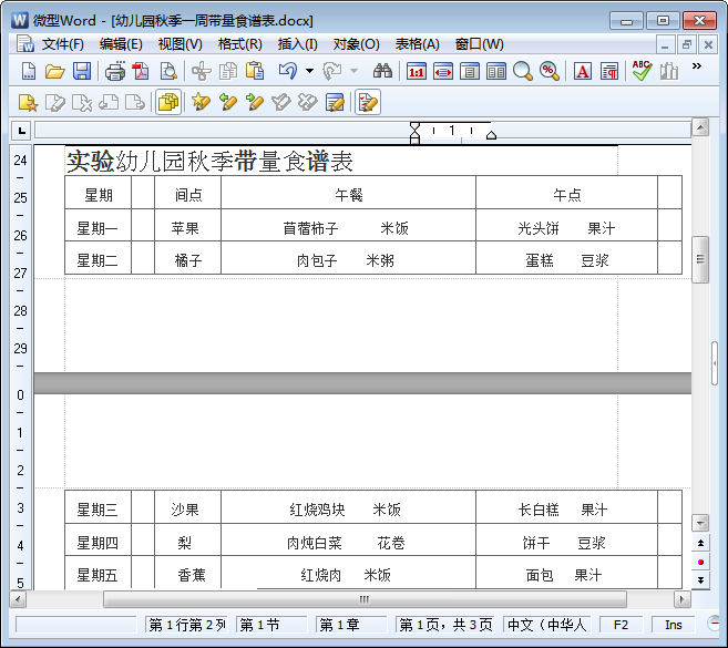 如何让幼儿园的孩子们在秋天这个季节里不仅吃得饱而且吃得有营养呢?本节内容东坡小编为大家整理带来的是一份最新整理的word版幼儿园秋季一周带量食谱安排表参考样表,因为有人说,秋季天气多变,但这个季节也正是给孩子补充营养、改善体质的最佳季节,所以在这份幼儿园一周食谱安排表中大家首先会看到的是一份以优质蛋白质为主的食谱,需要查看该幼儿园一周食谱安排表全部内容的朋友们可点击本文相应的下载地址进行下载!
