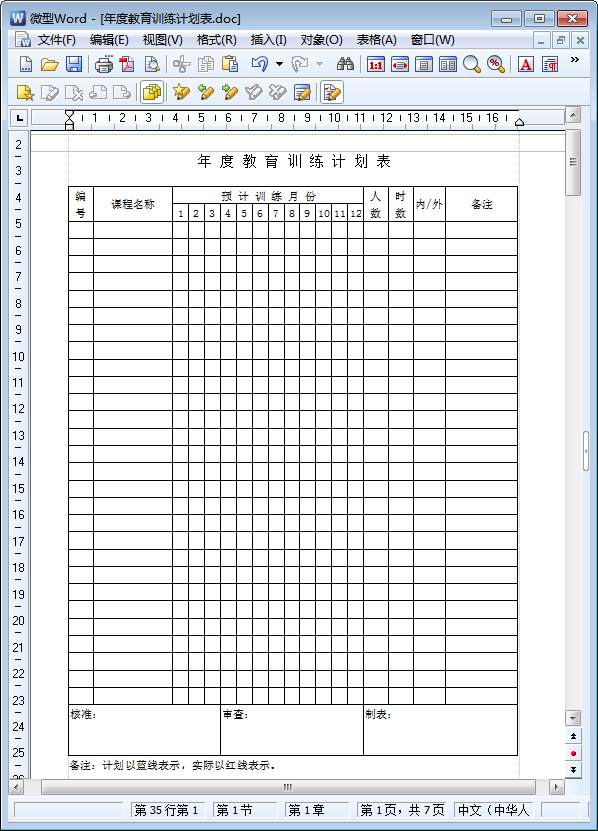 该年度教育训练计划表格可作为公司、单位等进行年度教育训练计划规划时使用,该表格分为课程名称、预计训练月份、人数以及时数等项别,以下有该年度教育训练计划表格模板的样表,需要下载使用的朋友们点击本文相应的下载地址进行下载即可!