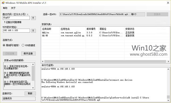 Win10 Mobile APK Installer是一款支持局域网以及USB数据线两种方式连接、支持批量apk部署以及安装前APK文件信息预读的win10手机安装APK工具。