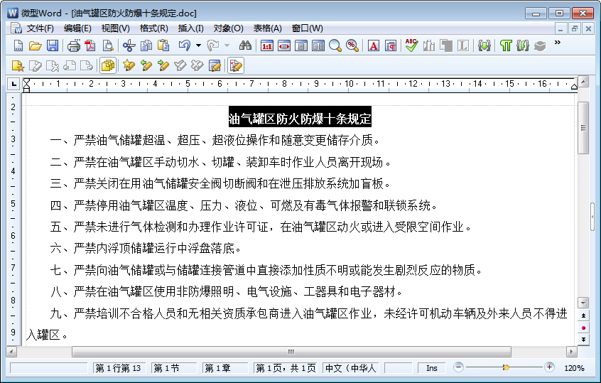 油气罐区防火防爆十条规定,又被称为是油气罐区防火防爆十条禁令,那么这十条规定或者说这十条禁令都包含有哪些内容呢?本节内容东坡小编为大家整理带来的便是一份doc格式word版油气罐区防火防爆十条规定,以下是关于该十条规定(十条禁令)的部分内容节选,有需要的朋友点击本文相应的下载地址进行下载即可查阅全部内容哦!