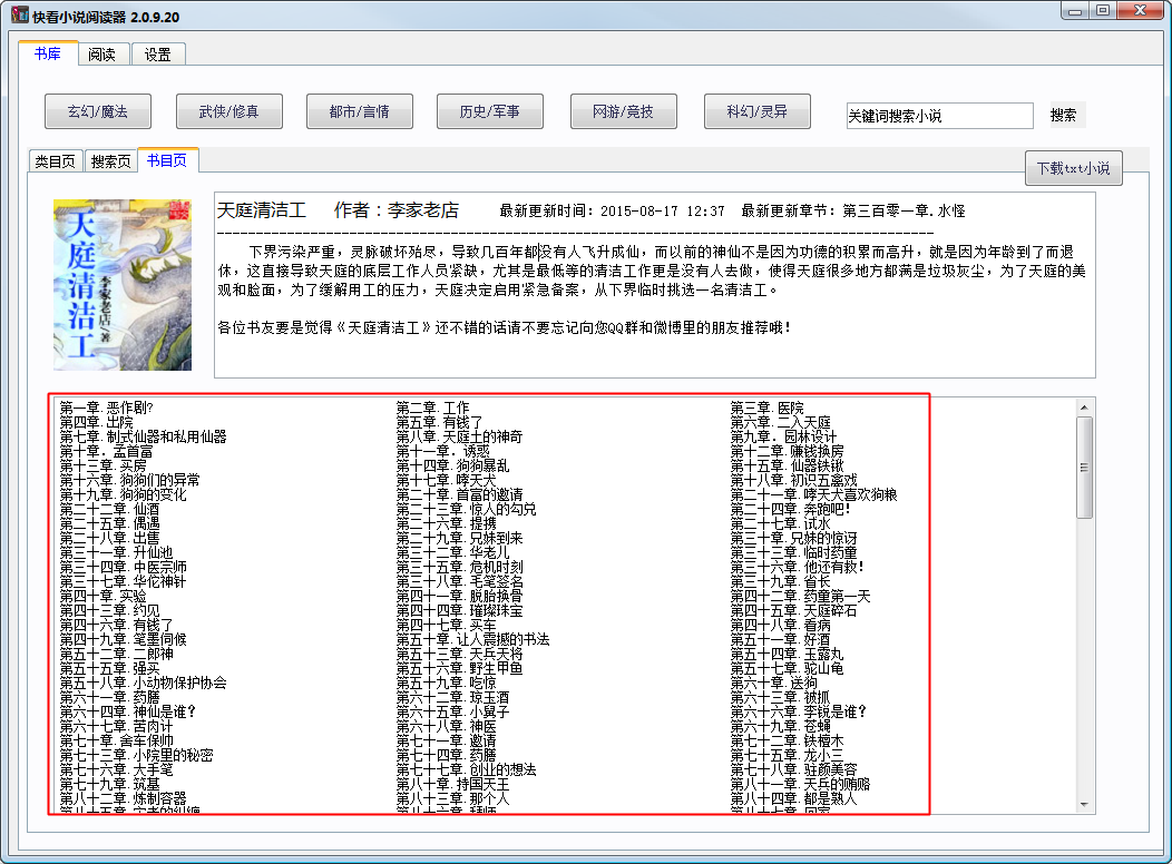 快看小说阅读器是一款绿色免费的小说阅读器,采用最先进的阅读、搜索技术,可为用户及时获取网络中热门小说更新,并且提供有广告自动过滤系统,为小说阅读者提供一站式的搜索阅读体验。
