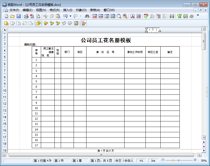 花名册一词由来已久,现在一些年轻的朋友们可能对它有些陌生,换而言之,花名册其实就是一种类似于人员登记表的文档。本节内容东坡小编为大家整理带来的这份公司员工花名册模板其实也是一份公司员工登记表模板,如果你需要一份下载员工花名册表格或是一份员工信息登记表,那么小编认为这份表格会为你提供帮助的,你觉得呢?
