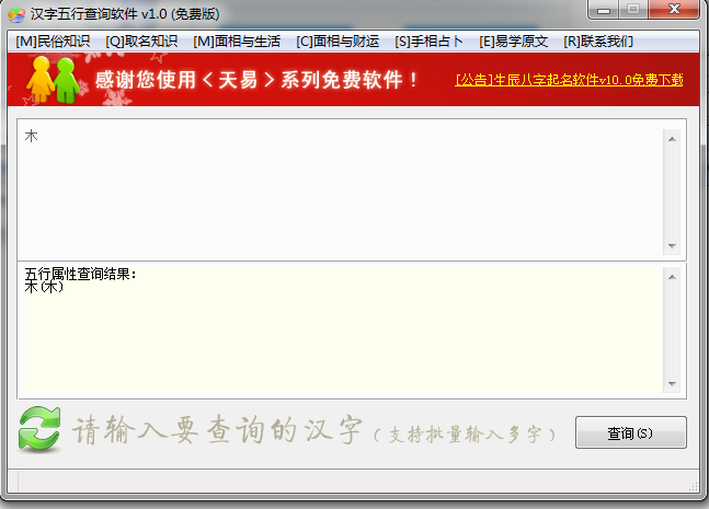 汉字五行查询软件是一款可以根据汉字字意及康熙笔画数查询其五行属性的软件,有这方面需要的朋友就可以直接的来东坡免费的下载这款软件,同时还有使用教程!