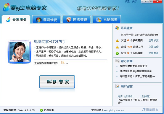 零时空电脑专家一款为满足电脑和互联网日益高度普及带来的电脑维修和电脑应用服务方面的巨大需求,同方股份有限公司于2007年推出了针对个人和家庭客户的远程电脑服务业务,有需要的赶紧来东坡下载使用吧。