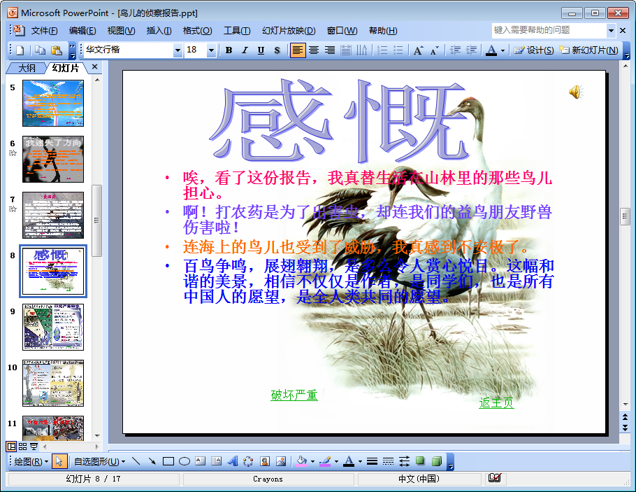 这是一份内容完整且免费的鸟儿的侦察报告ppt课件,该ppt课件共17页,内容包括课文导读以及课堂拓展训练等,如果你需要这份鸟儿的侦察报告ppt课件的话,那就赶紧来东坡下载吧!相信它不会让你失望的哦!
