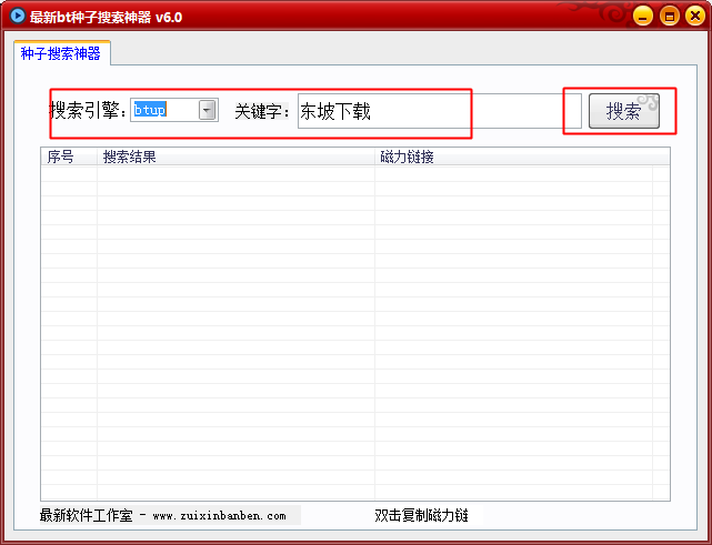 最新bt种子搜索神器是一款好用的种子搜索神器,界面非常简单,操作也很简便,输入关键字就可以一键搜索,找到你想要的电影电视,需要的朋友快来东坡下载吧。