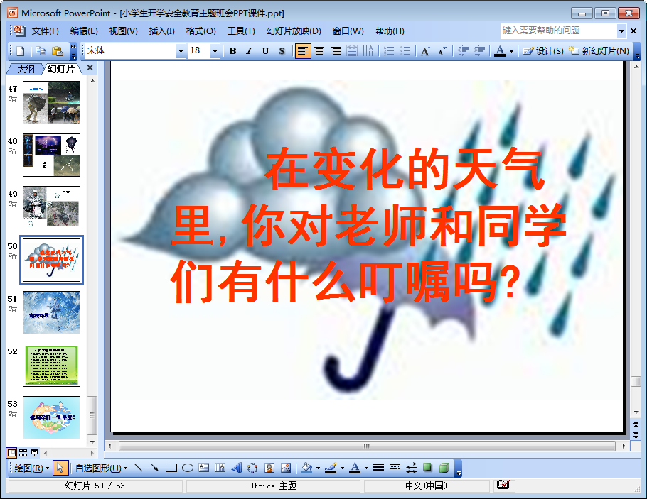 开学第一课应该给学生们讲些什么呢?——毋庸置疑,安全是永恒的主题,它也应该被一再强调,放在第一位也不过分。本节内容东坡小编为大家精选带来的是一份免费的、由53页组成的开学第一课课件之小学生安全教育主题班会ppt,该ppt内容十分完整,且讲解详细,需要一份小学生安全教育ppt课件的教师朋友们,欢迎点击本文相应的下载地址进行下载!