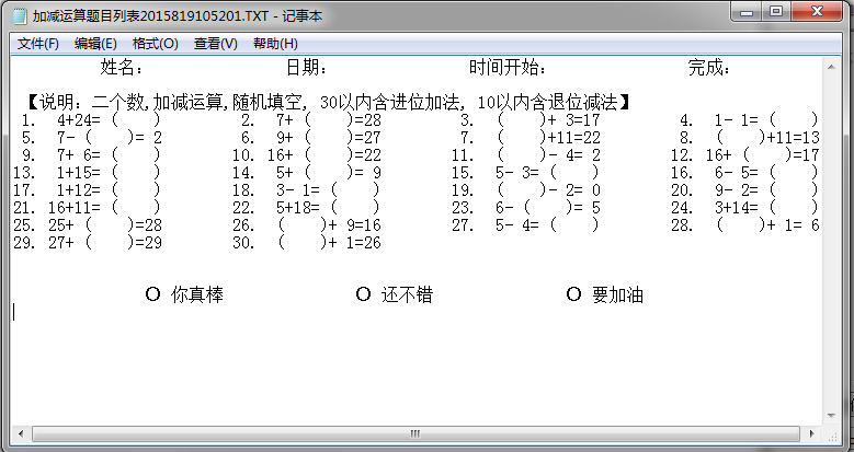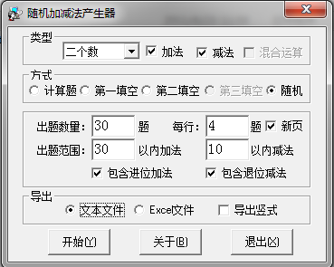 2.可以按需要生成进位加法(默认)、无进位加法,退位减法(默认)、无退位减法