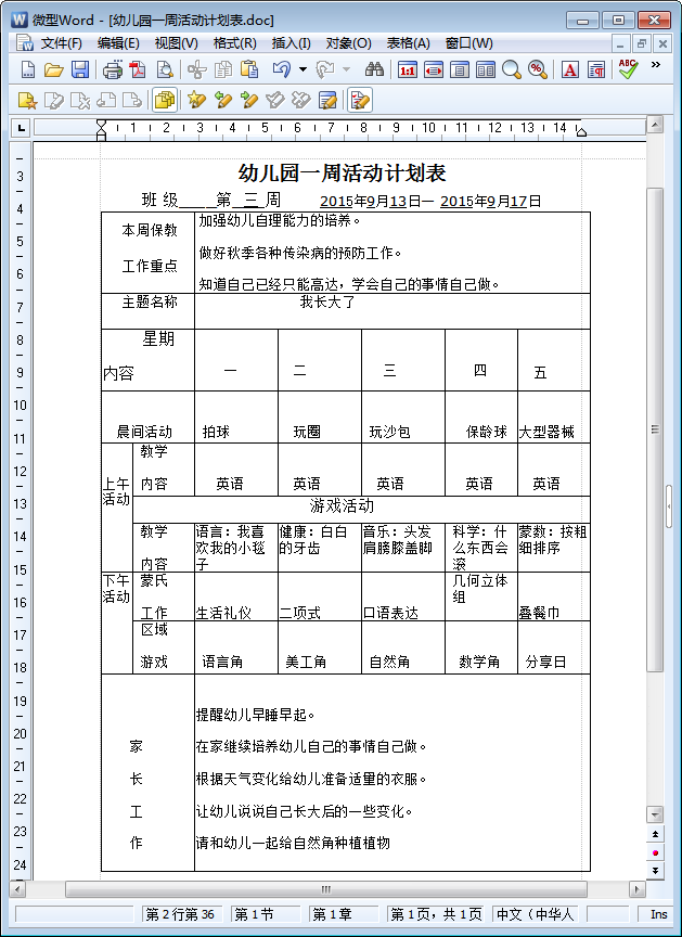 幼儿园周活动计划表应该如何制定呢?其中又应该包含有哪些内容呢?在本节内容中东坡小编为大家整理带来的是一份doc格式word版有内容可供参考的幼儿园一周活动计划表,需要一份幼儿园周计划表格模板或是幼儿园周活动计划表的朋友们都可以来参考一下哦!