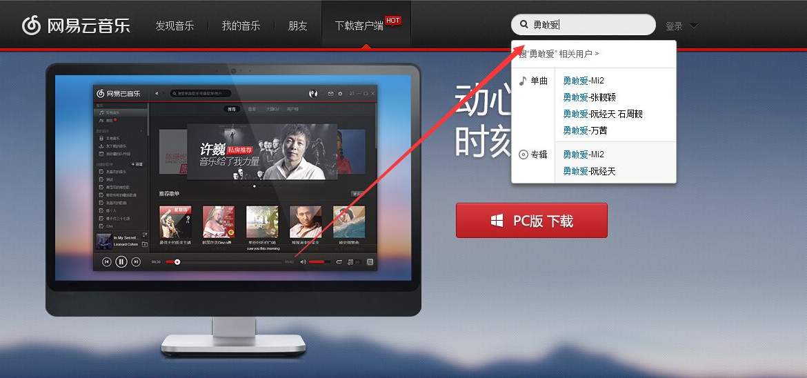 这里使用的是网易云音乐 点击软件上音乐的搜索按钮就可以进去或者直接网易云搜索