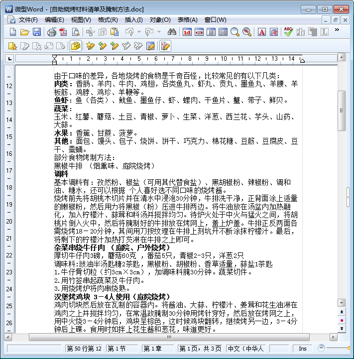 不少朋友放假的时候最喜欢做的事情之一就是和三五好友一起相约出去来一次自助烧烤,但问题往往是,当一切准备妥当开始烧烤的时候,就发现要么没带盐,要么没带烧烤叉——不经意间,烧烤兴致就减少一半,鉴于不少朋友都出现过这样的问题,于是贴心的东坡小编便为大家整理带来了这样一份doc格式word版的自助烧烤材料清单,以方便大家打印使用,好照着清单带烧烤工具,另外,该清单中还含有烧烤材料详细腌制方法,有需要的朋友可以参考一下!