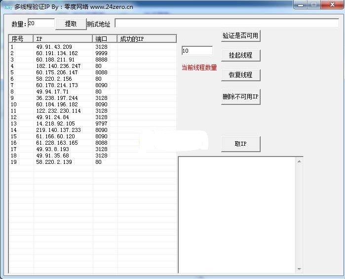 零度多线程验证IP是一款非常不错的ip验证工具。可以迅速的帮你获取免费的代理ip。还是比较实用的。有需要的可以来东坡下载使用!