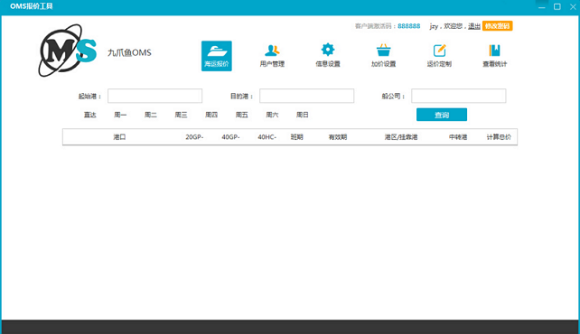 OMS物流工具是由九爪鱼(上海)物流信息技术有限公司 精心打造的一款物流报价工具,上万条运价实时更新,可以根据您的企业业务需要,进行一键式运价订制,并且包含了在线客户管理以及客户行为跟踪分析。有需要的赶紧来下载使用吧。