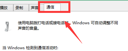 3、在”声音控制面板“,找到”通信控制面板“,如图