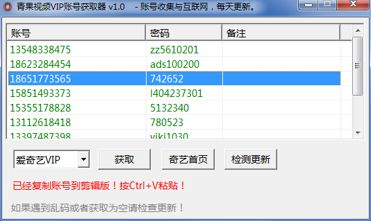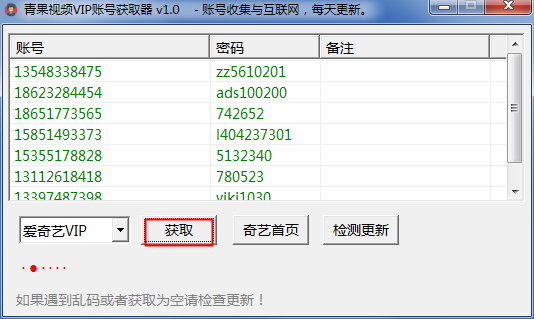 点击获取按钮,这样就可以获取大量的vip账号和密码了