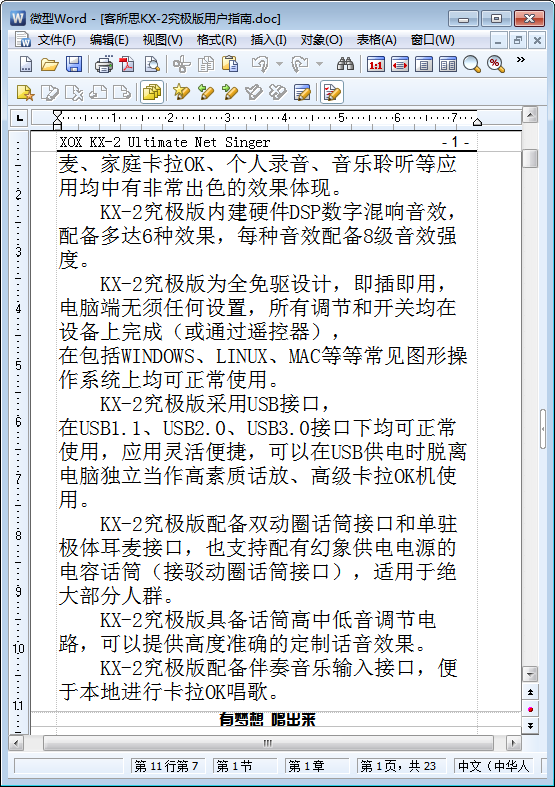 KX-2究极版特有的麦克风厚润优化及磁性优化技术大幅提高了网络语音娱乐的音质音效,使得低端麦克风、耳麦也可以拥有近似高档麦克风的音效。