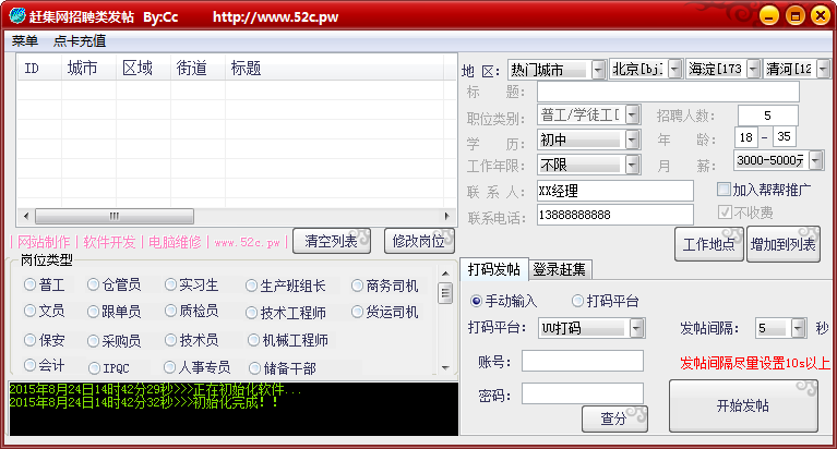 赶集网是一个非常专业且信息种类相当齐全的信息发布平台,怎样能快速上在上面发布你的信息呢,今天东坡小编带来一款辅助工具——赶集网自动发帖软件(帮帮发帖),它功能强大,绿色免费,可批量进行发贴,而且发贴成功能率高,推荐给有需要的朋友使用!