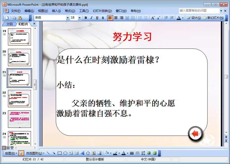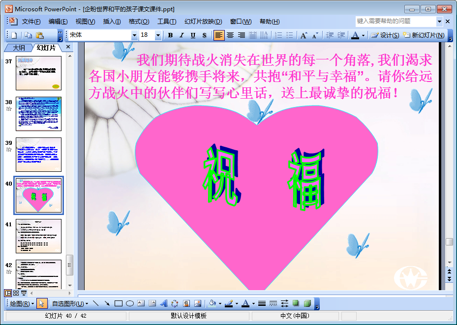 企盼世界和平的孩子是小学阶段(六年级)语文课本中的一篇十分让人感动的(信件)课文,那么如何让学生理解这篇课文所表达的感情和中心思想呢?——如果你在思考这一问题的话,那么东坡小编建议你可以将这份由42页组成的六年级语文ppt课件之企盼世界和平的孩子课文课件下载下来参考一下哦!