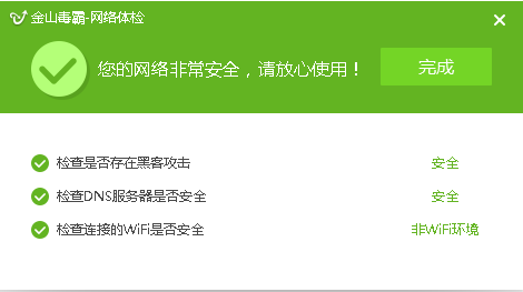 金山毒霸网络体检(网络安全检测软件)是一款由大神提取自金山毒霸的网络检测软件。该软件可以帮助用户快速检测电脑系统是否存在各种潜在的危险漏洞,还能检测wifi网络的安全,快速检测出蹭网的用户。有需要的朋友赶紧来下载使用吧。