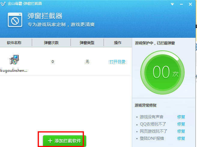 1、支持手动添加需要拦截外挂 —— 玩游戏免打扰!