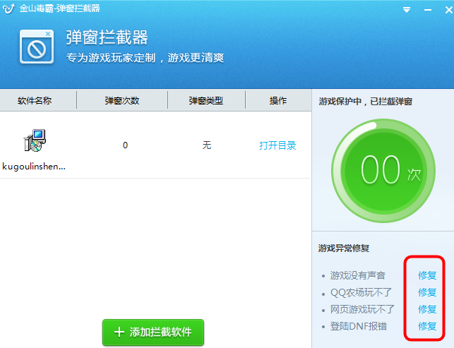 大家在玩游戏的过程中总会有很多讨厌的广告出现,那么想要更好的游戏,就需要借助金山毒霸弹窗拦截器,帮助你快速有效的拦截广告,从而让你们在也看不到任何广告!喜欢的就赶紧来此下载吧!