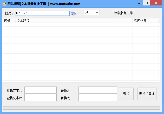 PHP网站源码批量替换工具支持目前主流的可编辑格式替换,目前支持JS,CSS,ASP,ASPX,HTM,HTML,PHP,TXT等主流格式批量替换查找。