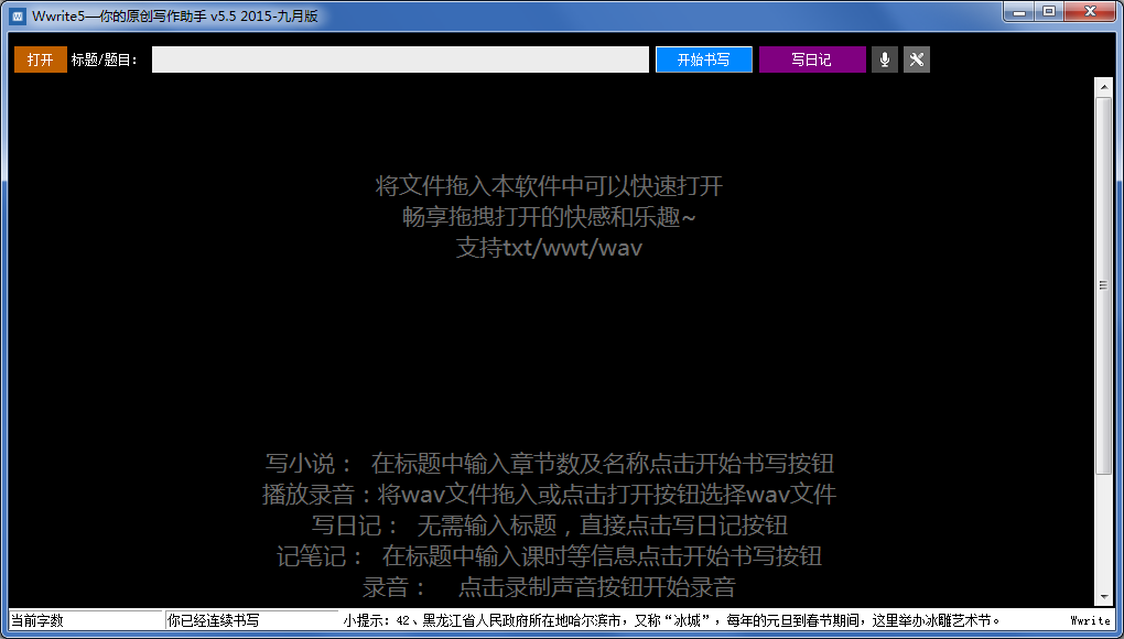 Wwrite5你的原创写作助手是一款文本文章写作工具,可以写小说,写日记,使用非常方便,将文件拖入本软件中就可以快速打开,同时支持txt、wwt、wav等的文本格式,东坡小编就给大家带来这款小说写作助手-Wwrite5你的原创写作助手,大家可以免费下载使用。