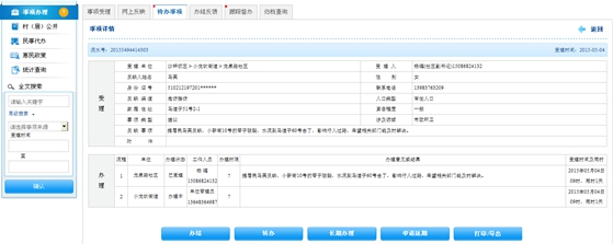(4)“申请延期”系无法在规定时间内办结该事项时使用,提出申请后,须经乡镇(街道)初审、指挥中心同意,方可延期。