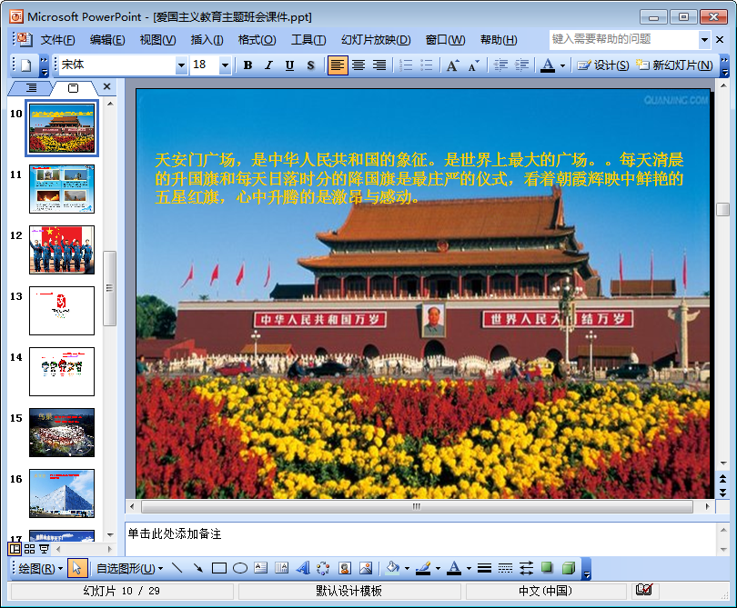 近日看到不少朋友在找与爱国教育有关的ppt课件,于是东坡小编特为大家整理带来了这份内容完全免费,共由28页组成的爱国主义教育主题班会课件,该ppt课件内容严谨而不失活泼,是一份拿捏得十分恰当的ppt课件,如果你需要这份爱国教育ppt课件的话,点击本文相应的下载地址进行下载即可!