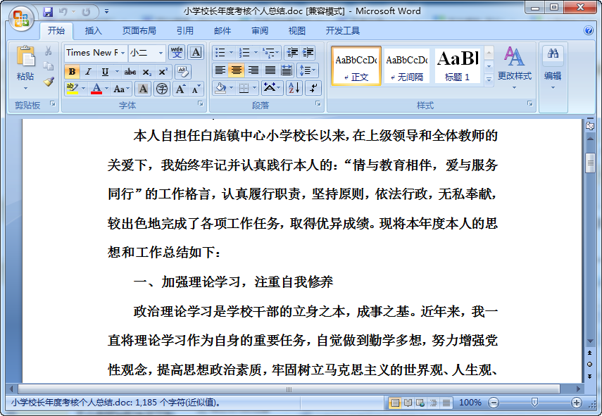本人在自己的工作岗位上,经过不断学习、不断积累,有了一定的工作经验,能够较熟练地处理日常工作中出现的各类问题。在组织管理能力、综合分析能力、协调办事能力和文字言语表达能力等方面,经过多年的锻炼都有了很大的提高,保证了本岗位各项工作的正常运行,在日常的各项工作过程中,没出现过错。平时我能积极主动地参加校长理论知识培训,建立了科学化、规范化的学校管理思想。