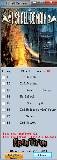 末路求生1.0修改器十项,MrAntiFun制作,对应游戏1.0版本使用,可以修改无限生命、无限子弹等11项功能,让你可以更加轻松的玩游戏。
