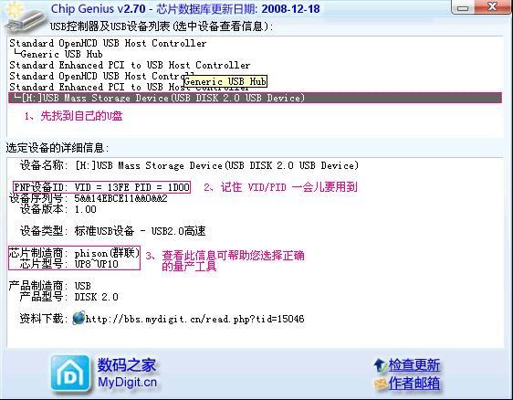 一、用ChipGenius(目前最新版本)检测USB设备芯片型号: