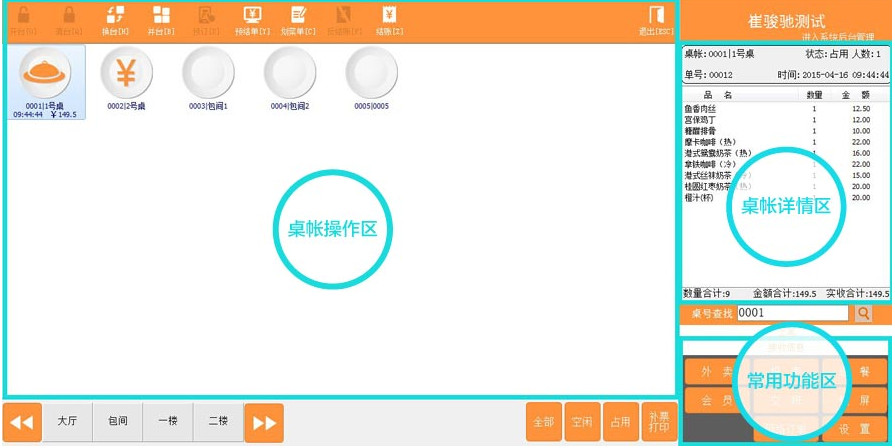 进入软件我们可以看到软件的功能操作区:桌账操作去、桌账详情去、常用功能区,可以根据自己的需要选择功能