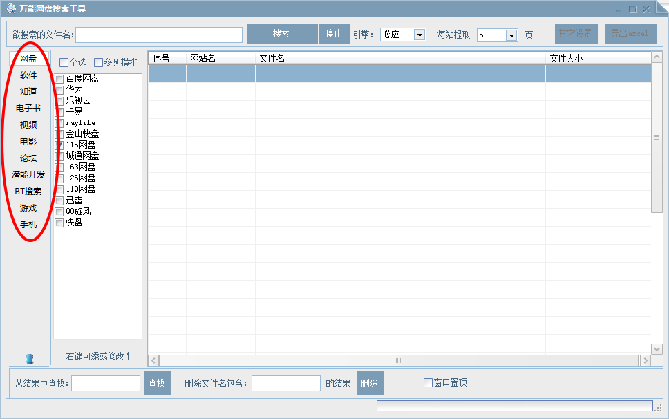 安装完成后,可以直接运行,左侧是软件支持搜索的网盘以及其他相关资源