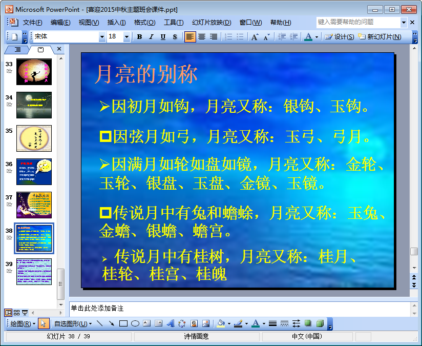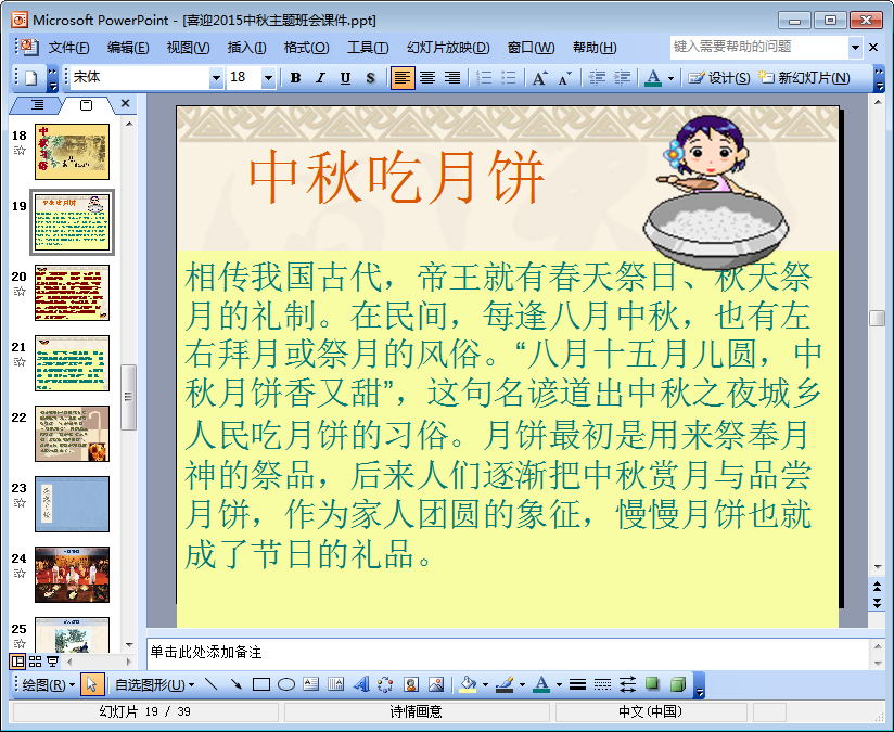2015年的中秋佳节就要来啦!不少班主任老师们也都在准备召开一次以中秋节为主题的班会课,而在本节内容东坡小编为大家整理带来了的是一份在这样的主题班会上可能会用上的课件——喜迎2015中秋主题班会课件(以下简称中秋节主题班会ppt),有需要的朋友们快来下载吧!