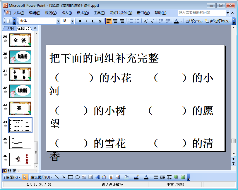 鄂教版二年级语文上册课本的第一篇课文是一篇名为《美丽的愿望》的文章。本节内容东坡小编为大家整理带来的是关于这份课文的教学课件——内容完全免费共由36页组成的美丽的愿望ppt教学课件,该课件图文并茂,便于学生理解课文,下文有该课件的预览图,需要下载该课件的朋友只需轻轻点击本文相应的下载地址进行下载即可!