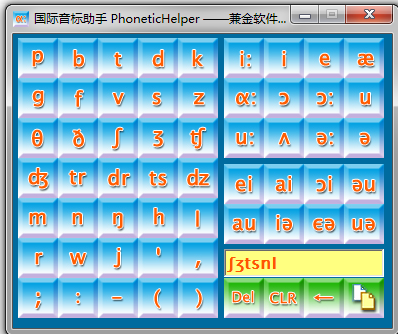 a.音标输入:点击界面中的音标按钮,即可在右下方黄色的输入框中输入音标,输入完成后,可点击复制按钮将音标复制到剪贴板中。可在菜单中设置“复制后自动清空输入框”。