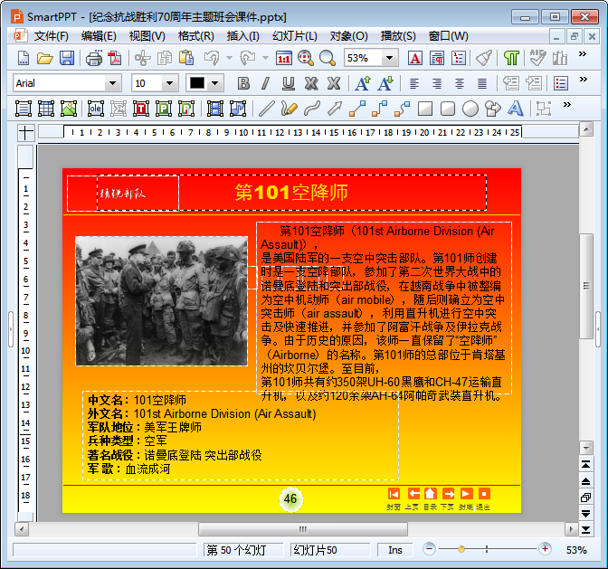 老实说,东坡小编将这份纪念抗战胜利70周年ppt命名为纪念抗战胜利70周年主题班会课件实在是低估了它的“威力”——因为小编在整理编辑这份ppt的过程中觉得这是一份内容超级全面且十分具有可读性以及可参考价值的历史资料,该免费完整版纪念抗战胜利70周年ppt共由106页组成,需要制作纪念抗战胜利70周年主题班会课件的教师朋友们可以参考一下!