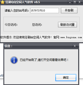 狂刷QQ空间人气软件是一款绿色免安装、简单易用的QQ空间刷人气工具,该软件可以帮助你提升QQ空间的人气,让你的空间真实的人气十足,有需要的赶紧来下载使用吧。