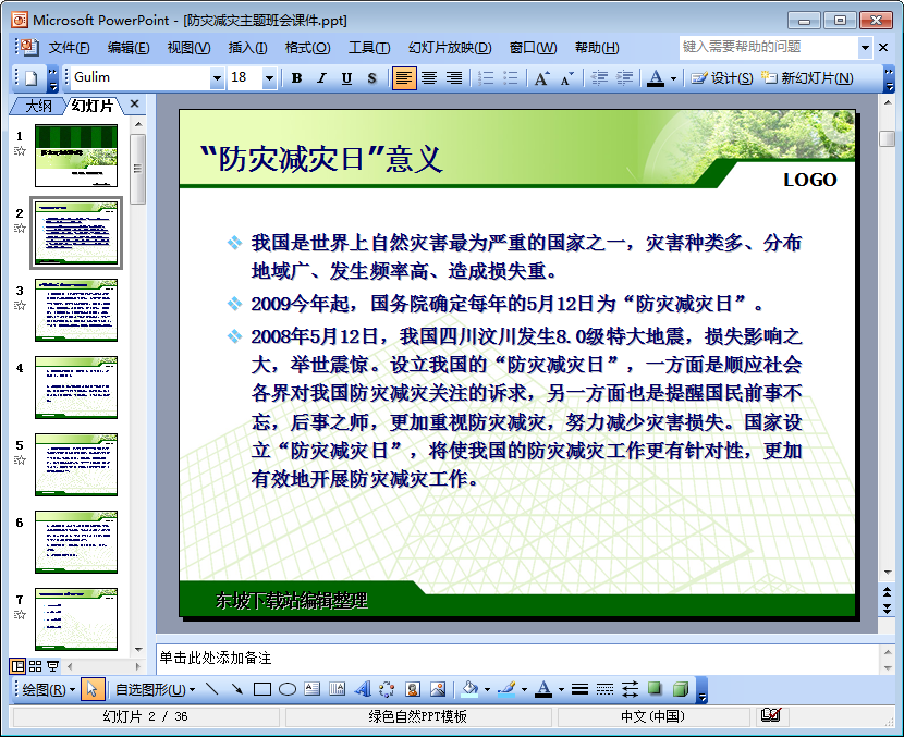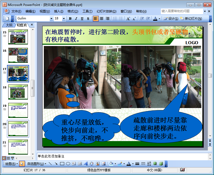 这份主题为“防灾减灾”的ppt共有36页,是一份适合用来作为班会课件的的ppt——换而言之,如果你需要一份小学防灾减灾主题班会课件ppt的话,那么该ppt将会是你的不二之选,下文是关于该小学防灾减灾主题班会课件的内容简介,如果你需要查阅该ppt的全部内容的话,只需点击本文相应的下载地址进行下载即可!